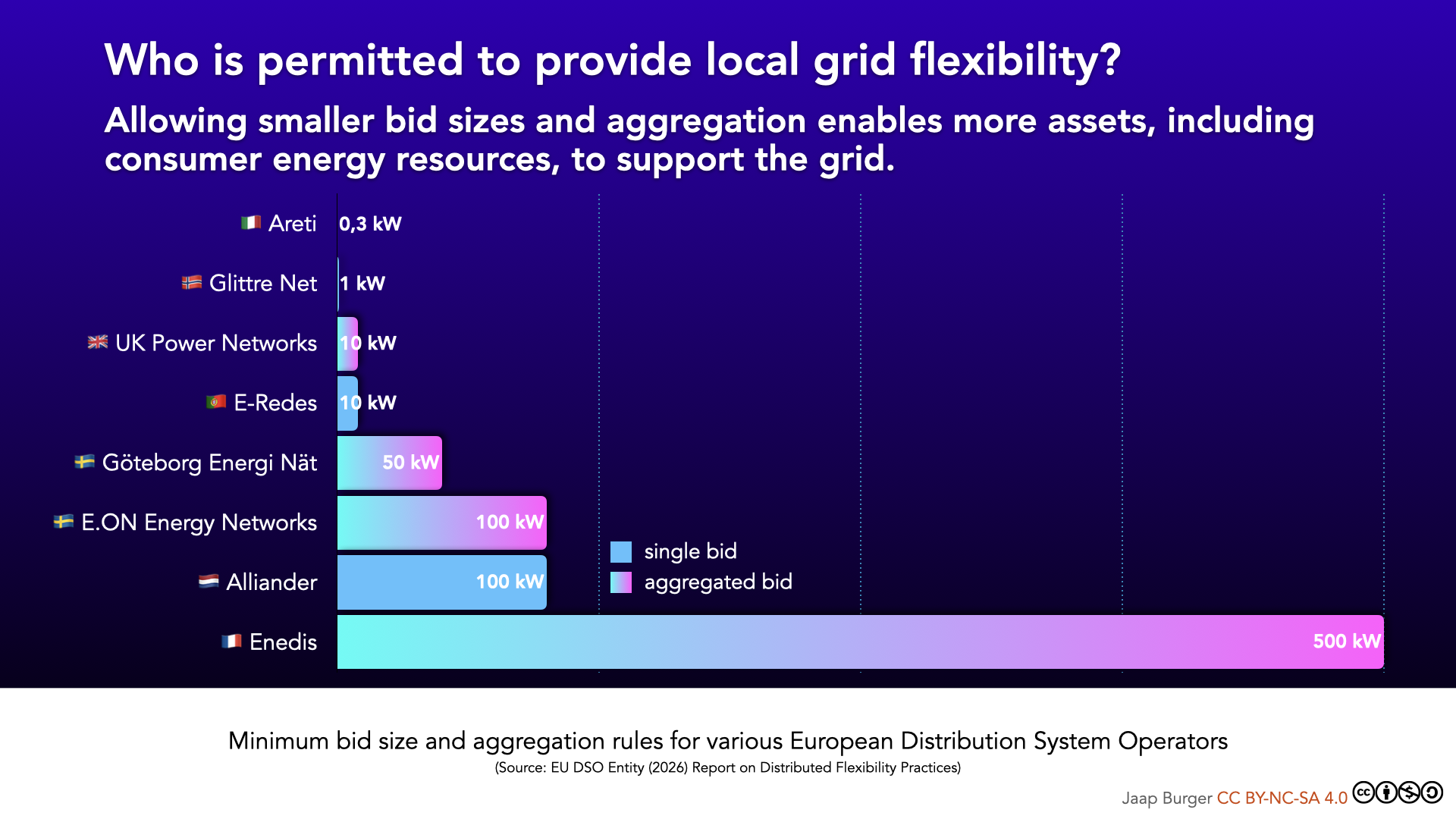 This can benefit users by reducing energy costs through better use of self-generated electricity and by taking advantage of varying prices on energy markets. In addition, these appliances can also easily provide flexibility for the national grid, or increasingly also for the local grid: with local flexibility markets, distribution system operators (DSOs) can use market-based flexibility as a temporary or permanent alternative to grid reinforcement (which cannot be realised quickly), in accordance with EU regulations. A report published today by EU DSO Entity discusses the current use of such platforms in Europe by various grid operators, and I used the information in the report to build this figure.